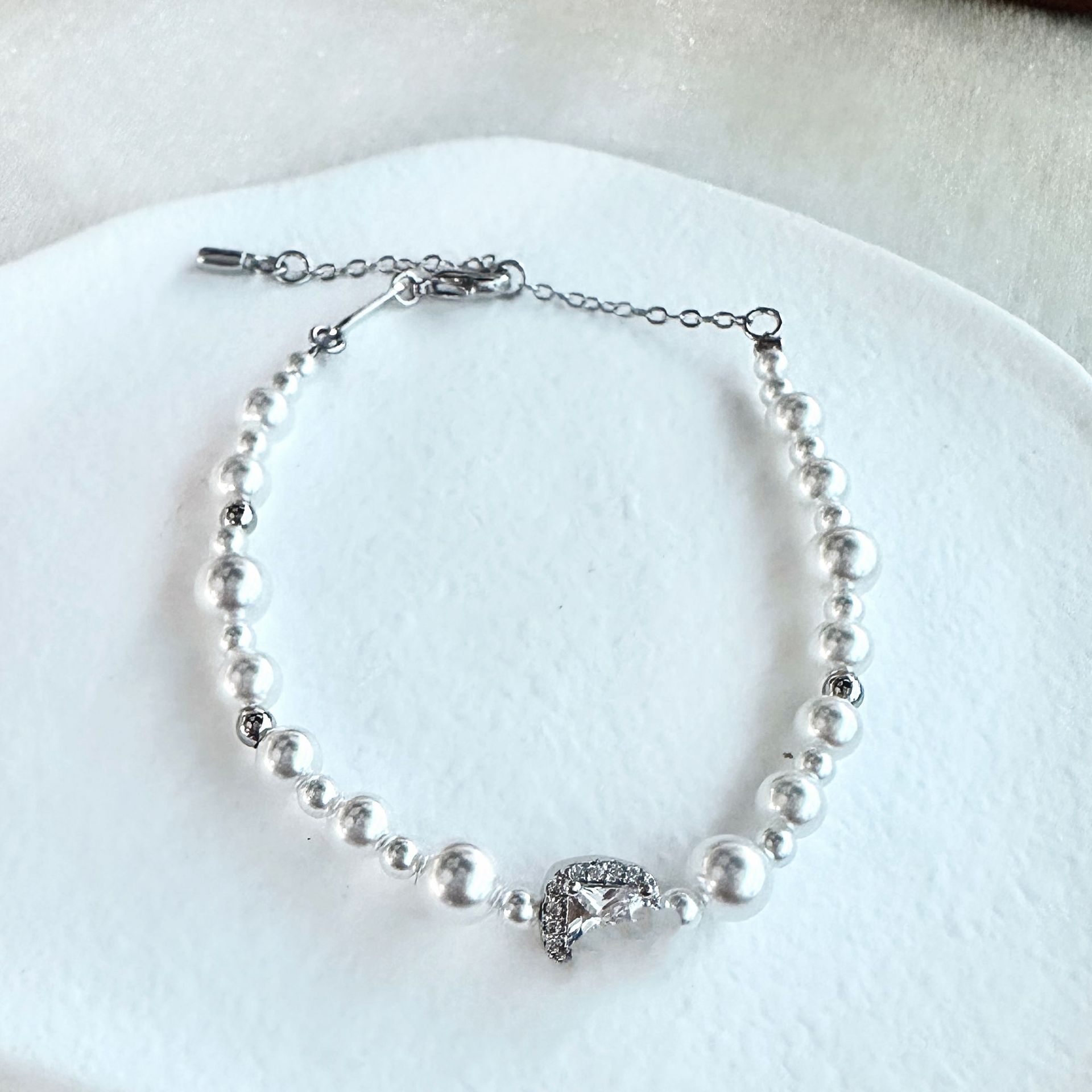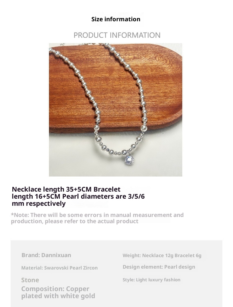 Color: white necklace, gray necklace, stud earrings, white bracelet, gray bracelet