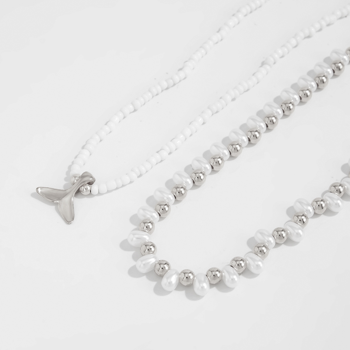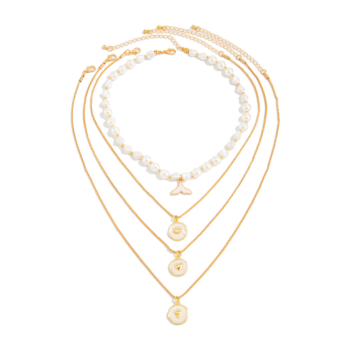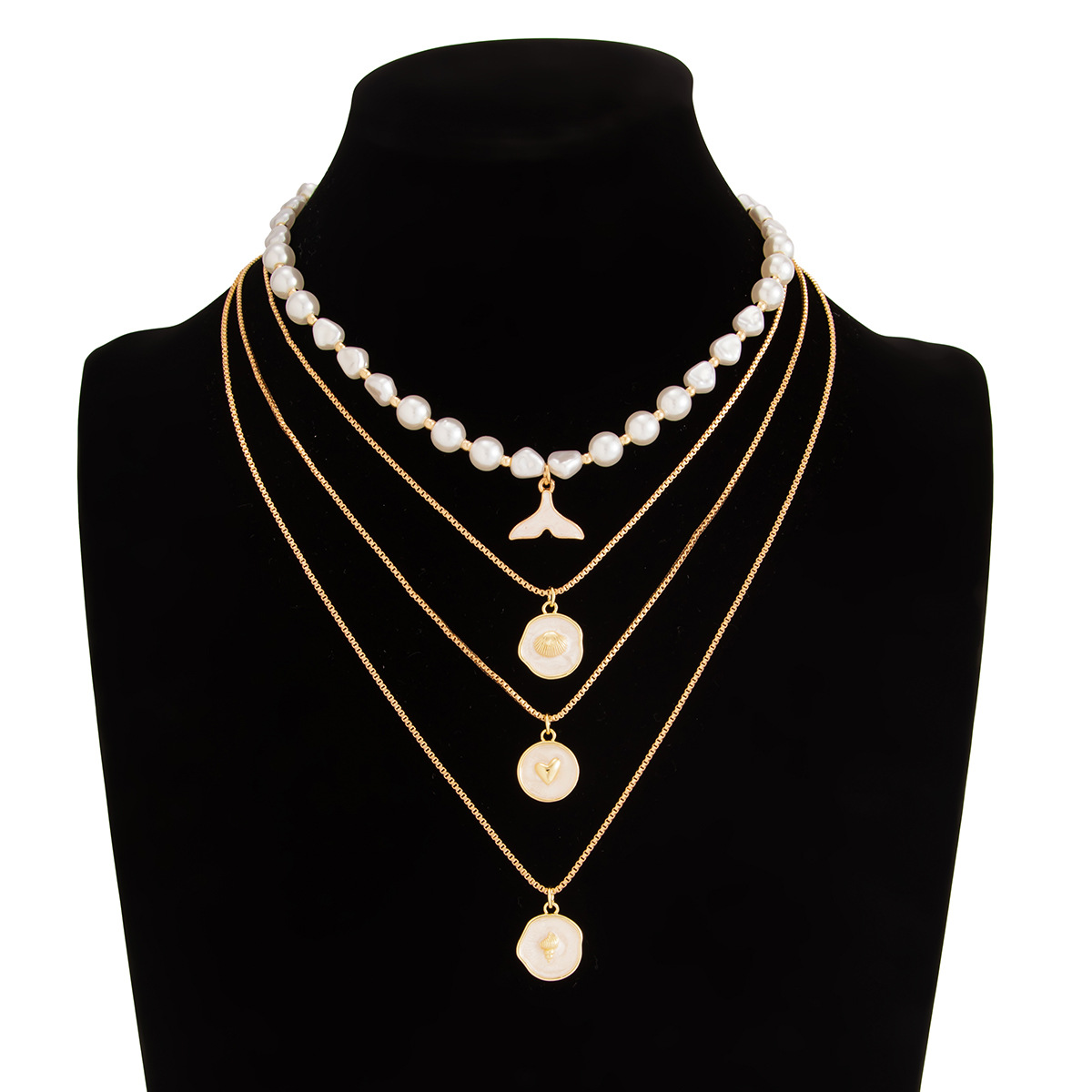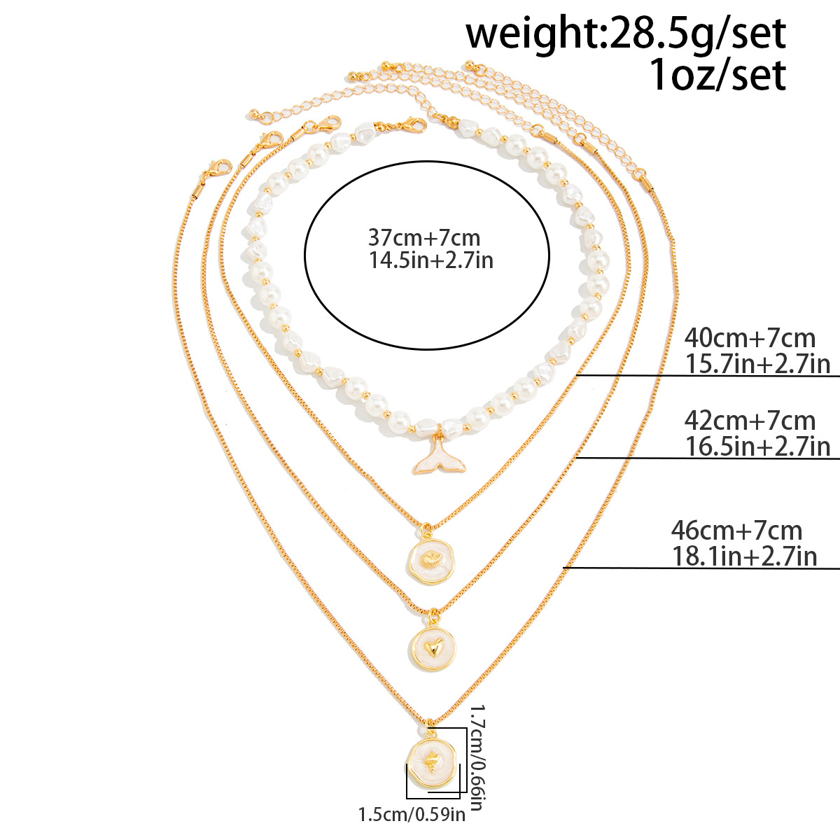 Ocean Wind Fish Tail Pearl Necklace Baroque Four-Pointed Star Heart Pendant