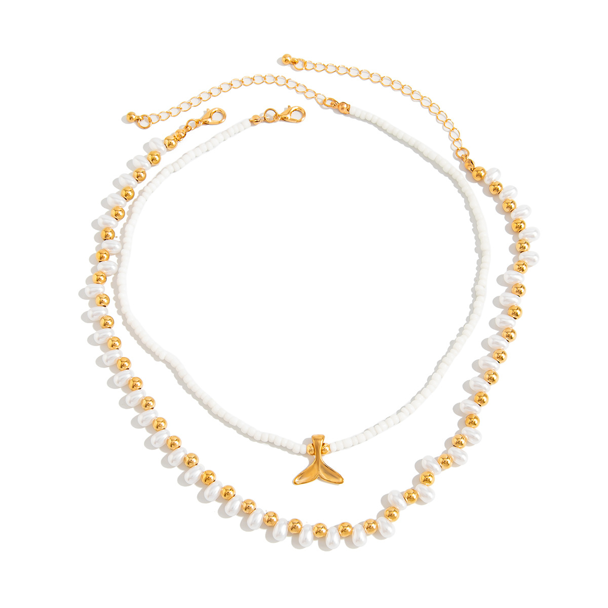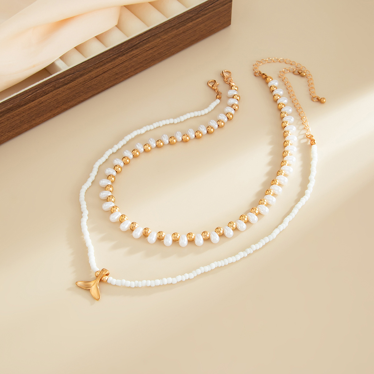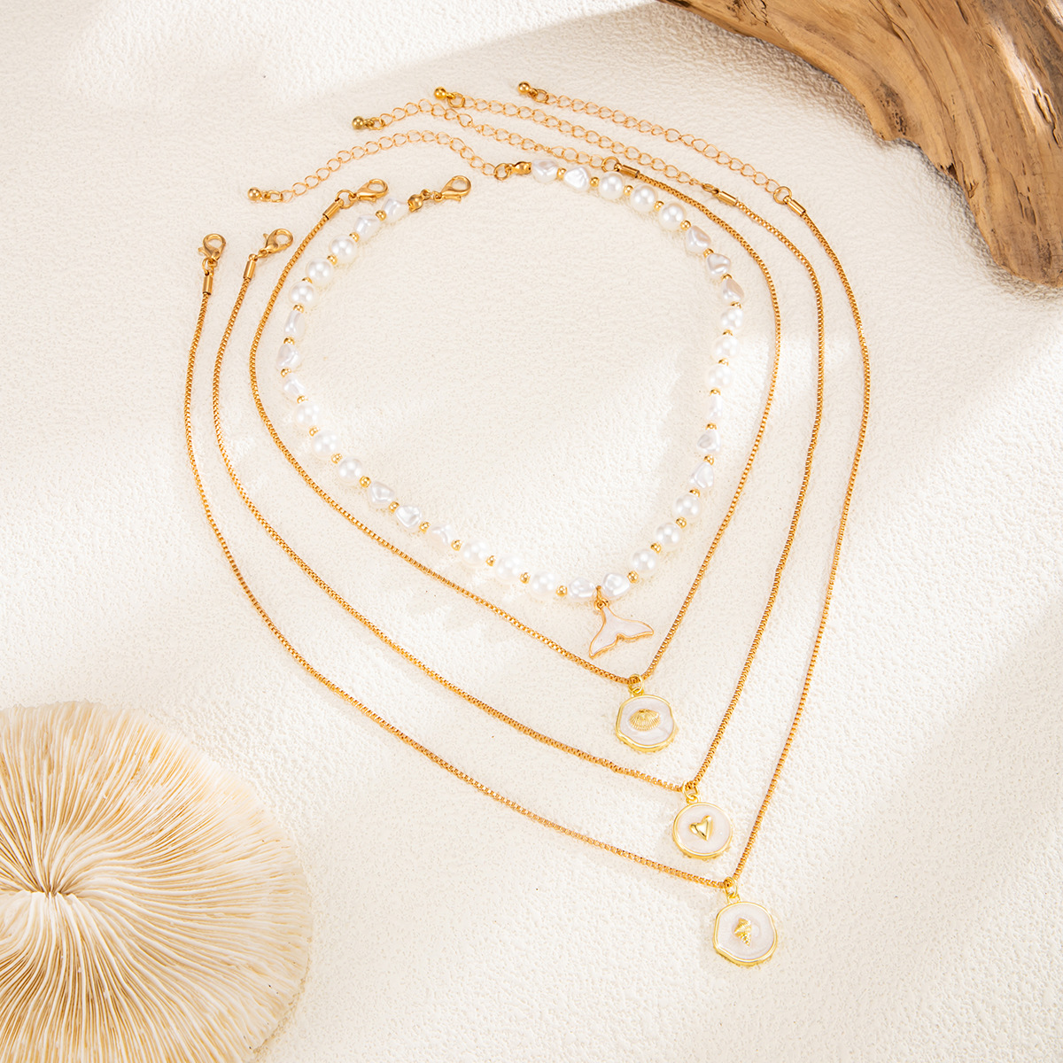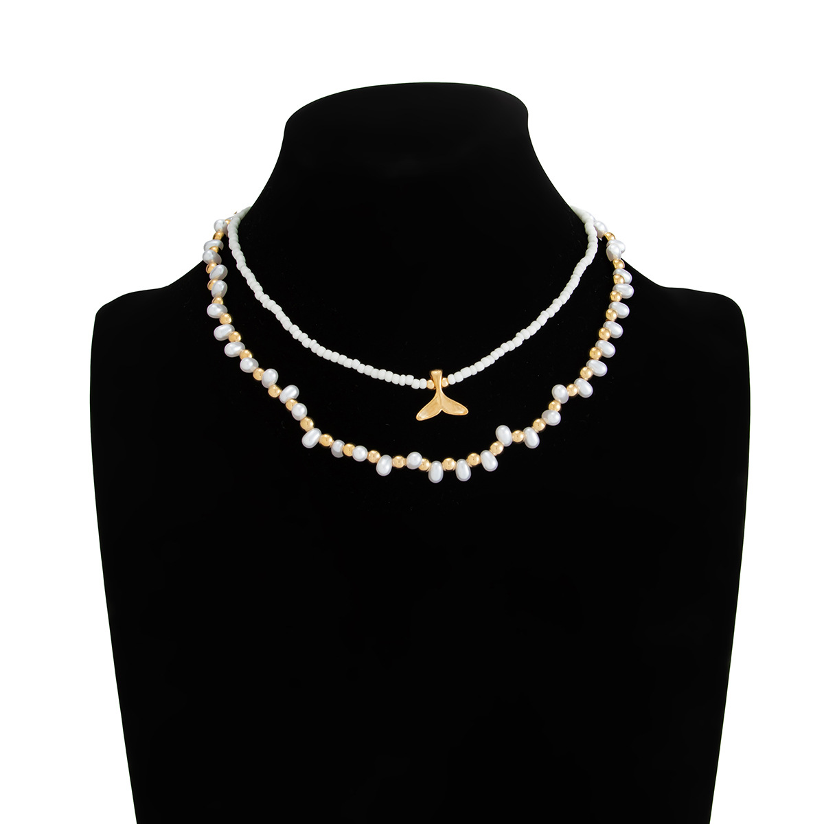 Ocean Wind Fish Tail Pearl Necklace Baroque Four-Pointed Star Heart Pendant