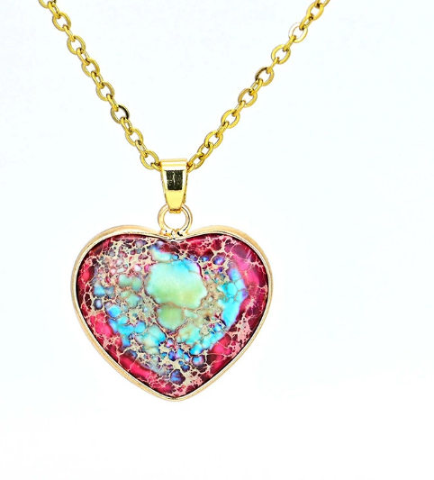 Red And Blue Heart-shaped Emperor Stone Necklace