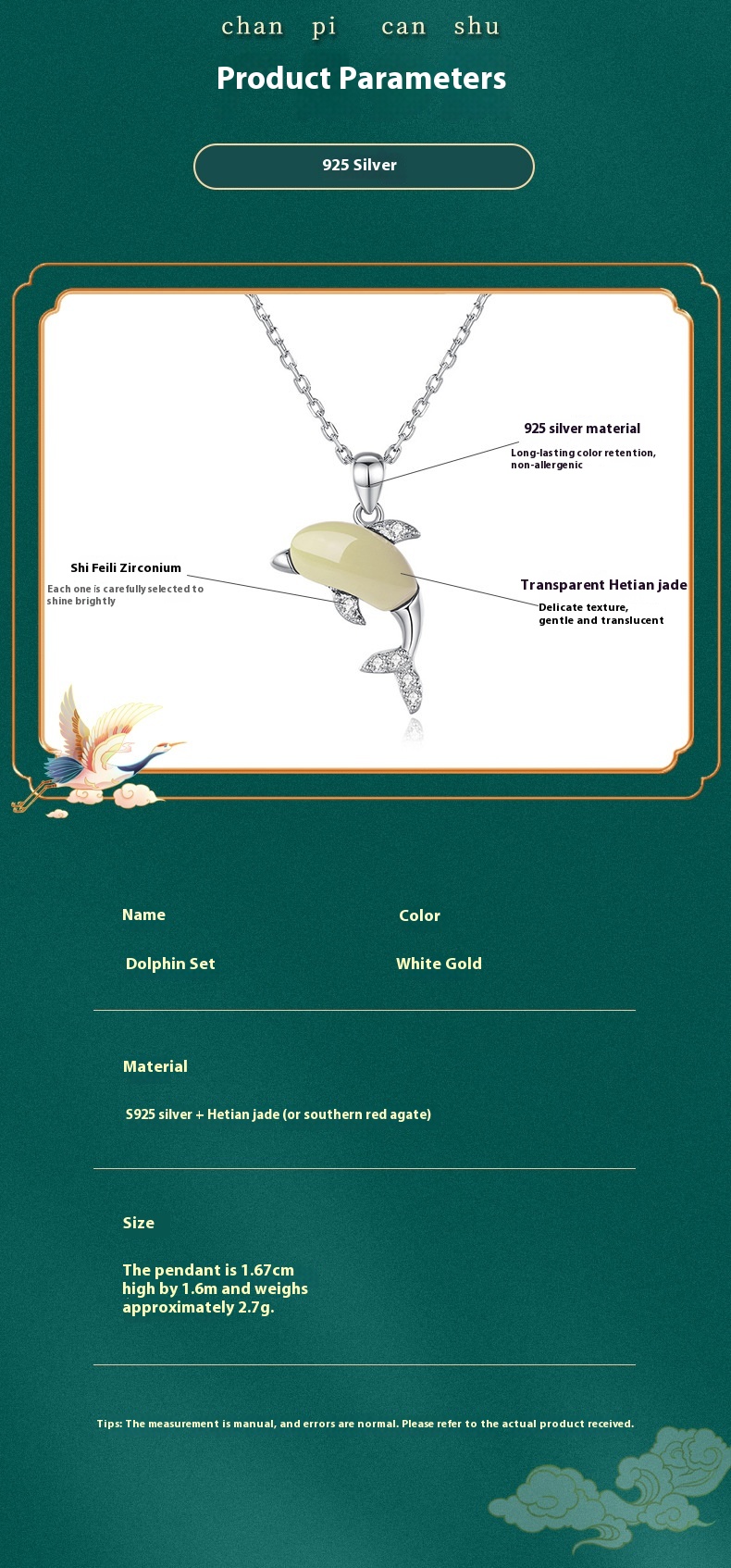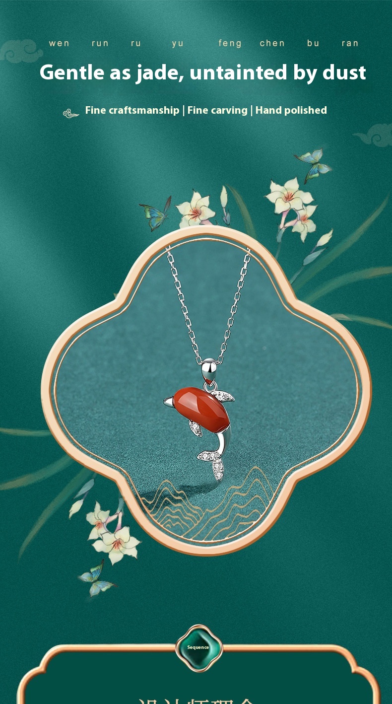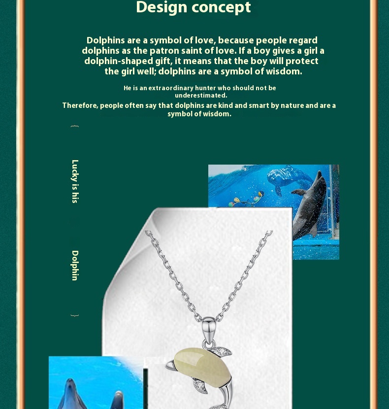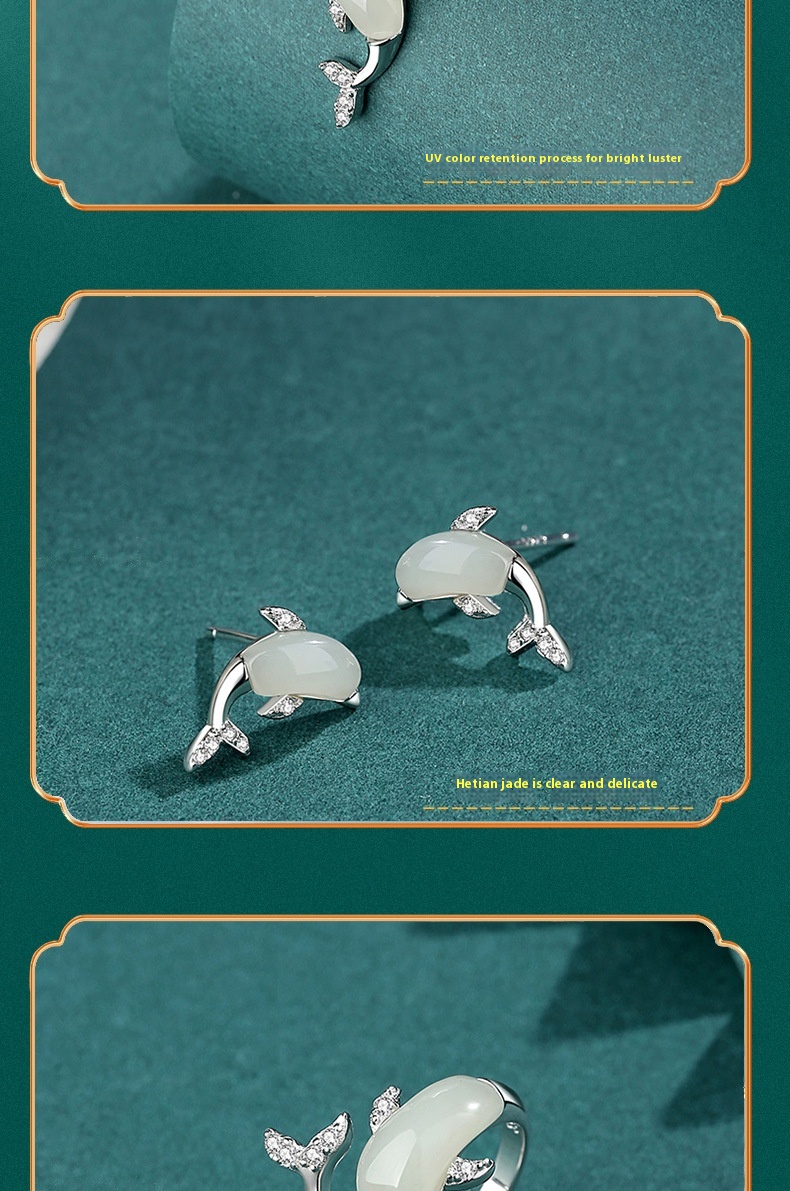 Style: White Gold color dolphin necklace (Hetian Jade), White Gold color dolphin ring (Hetian Jade), White Gold color dolphin ear studs (Hetian Jade), White Gold Dolphin necklace (southern red agate), White Gold Dolphin ring (southern red agate)