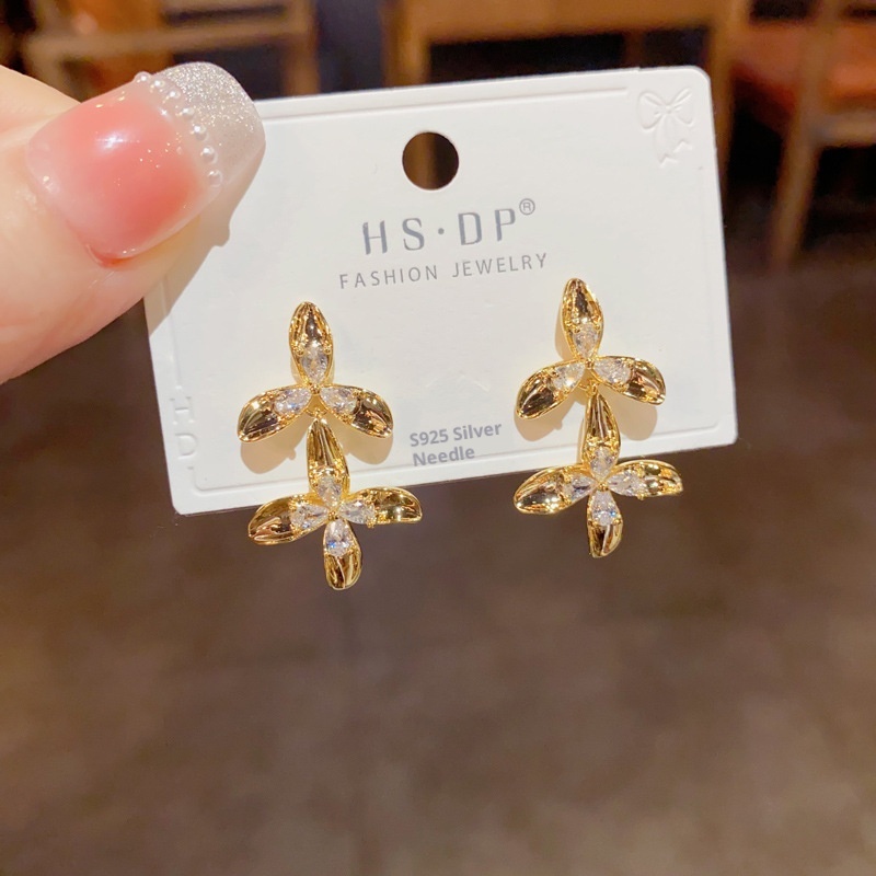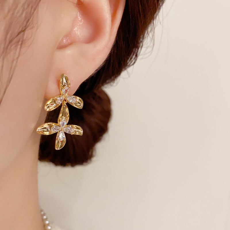 Color: metal diamond petal fringe eardrops (thick gold plating)
